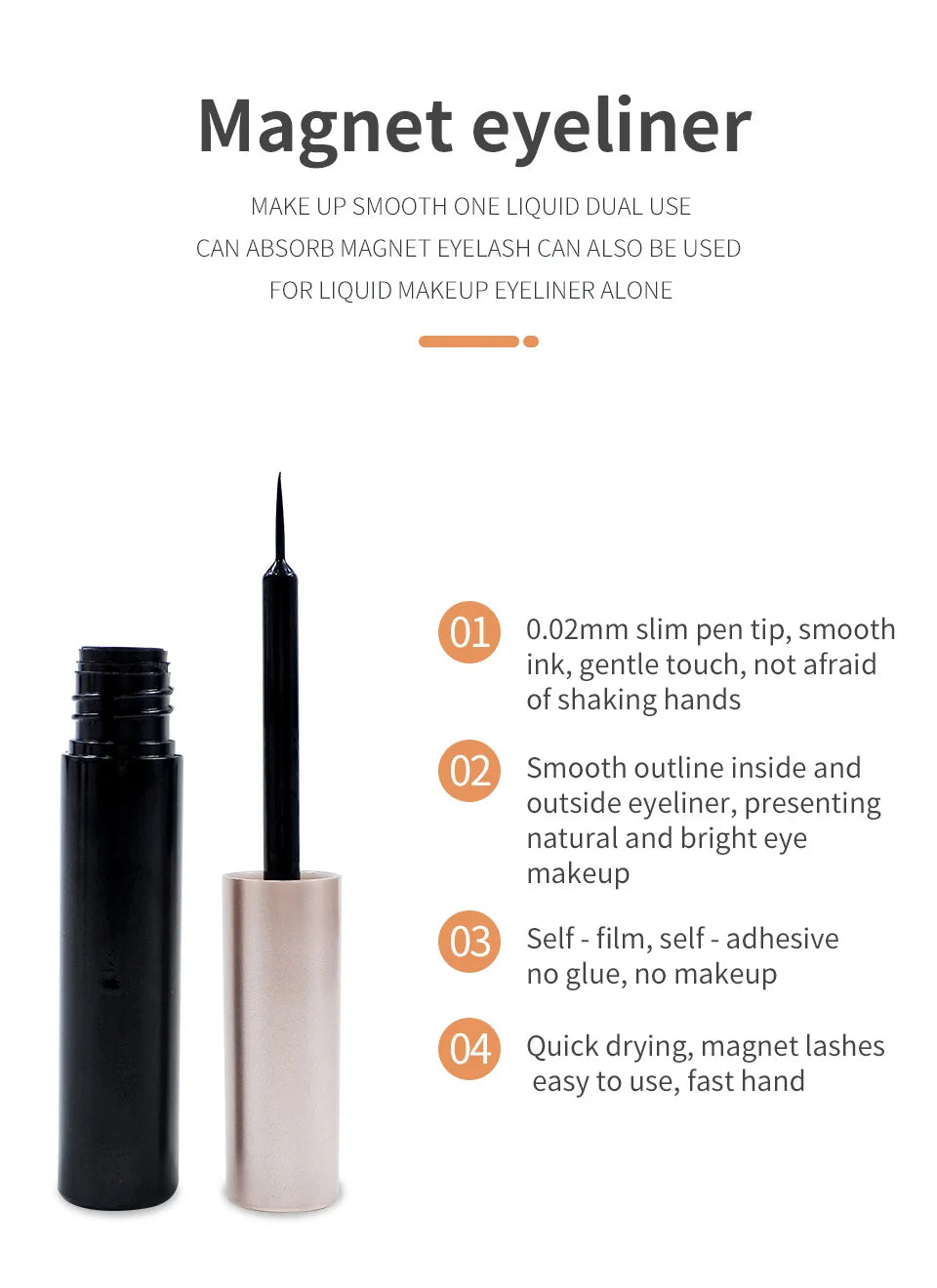 MAGNETIC EYELINER: The package comes with 1 tube special eyeliner, it have ultra-fine magnetic particles inside that allow the magnetic eyelash to easily attach and long-lasting