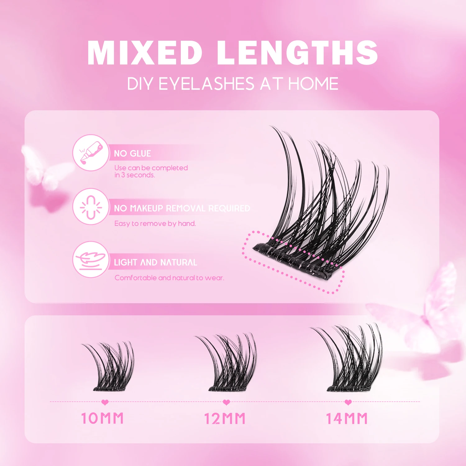 WOSHEER Self Adhesive Eyelashes Clusters Kit Lash Clusters DIY Eyelashes Pre Glued Reusable No Glue Needed No Remover No residue